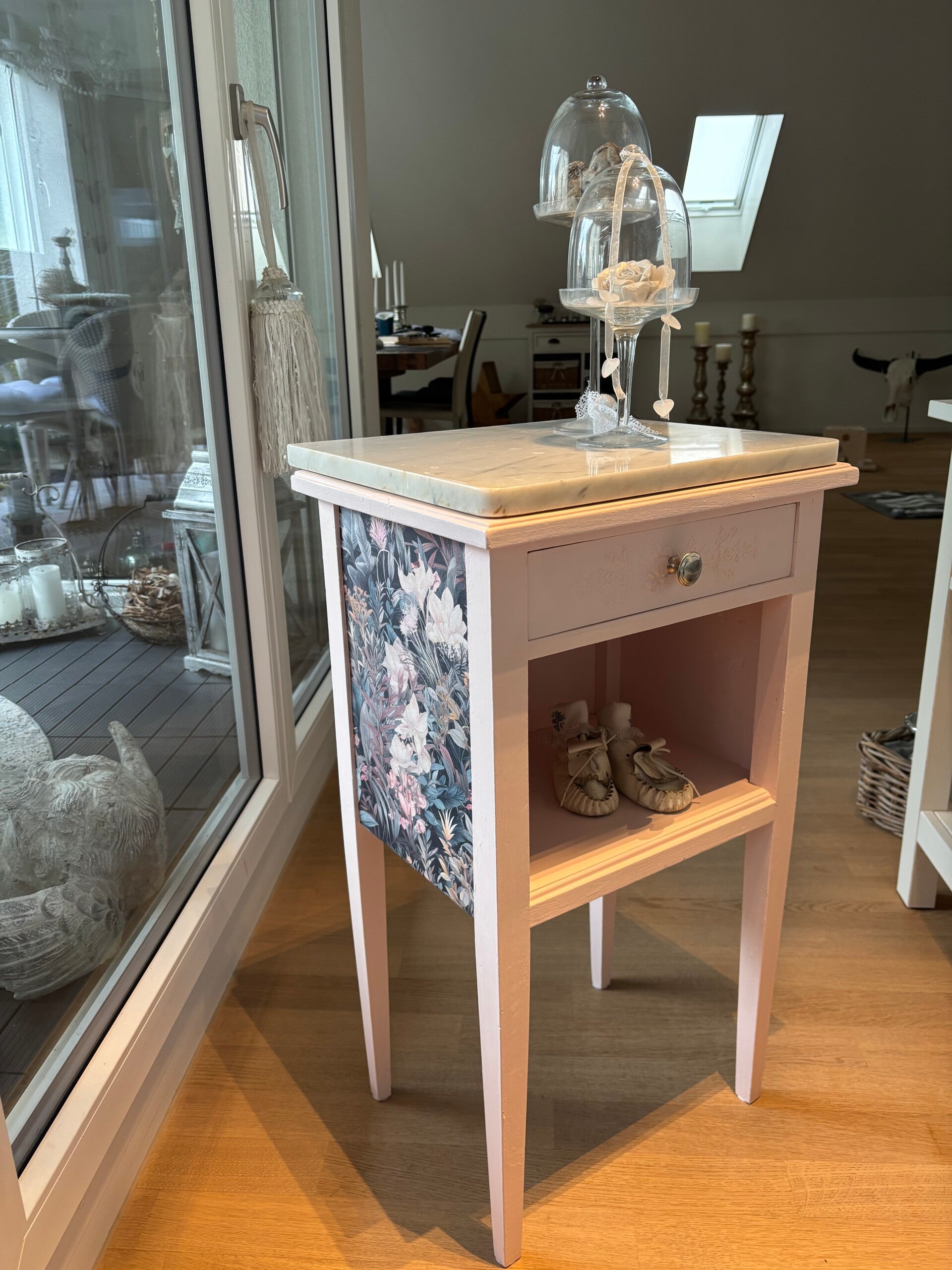 Upcycling Möbel im Vintage Look, in Zartrosa gestrichen.